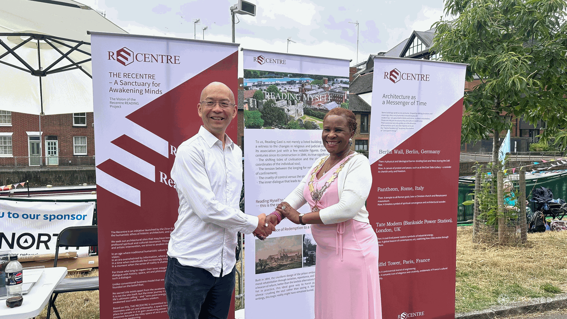 We were honoured to welcome the Mayor of Reading, Dr. Alice Mpofu-Coles, to our stand at the festival. She met with Ziran’s founder, Channing Bi, and joined us for a commemorative photo. It was a meaningful moment that marked the start of a long-term conversation between civic leadership and cultural development. During the visit, we shared with the Mayor our mission for The ReCentre: to create a space that bridges contemporary art, heritage, and community wellbeing. We also introduced our plans to transform a historic building in Reading into a vibrant cultural hub.